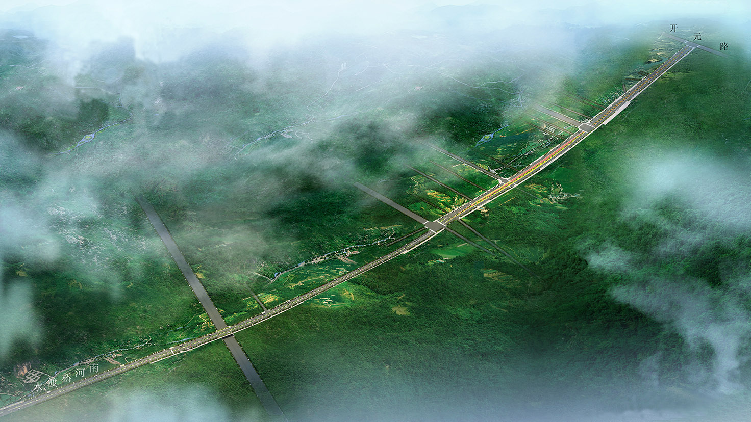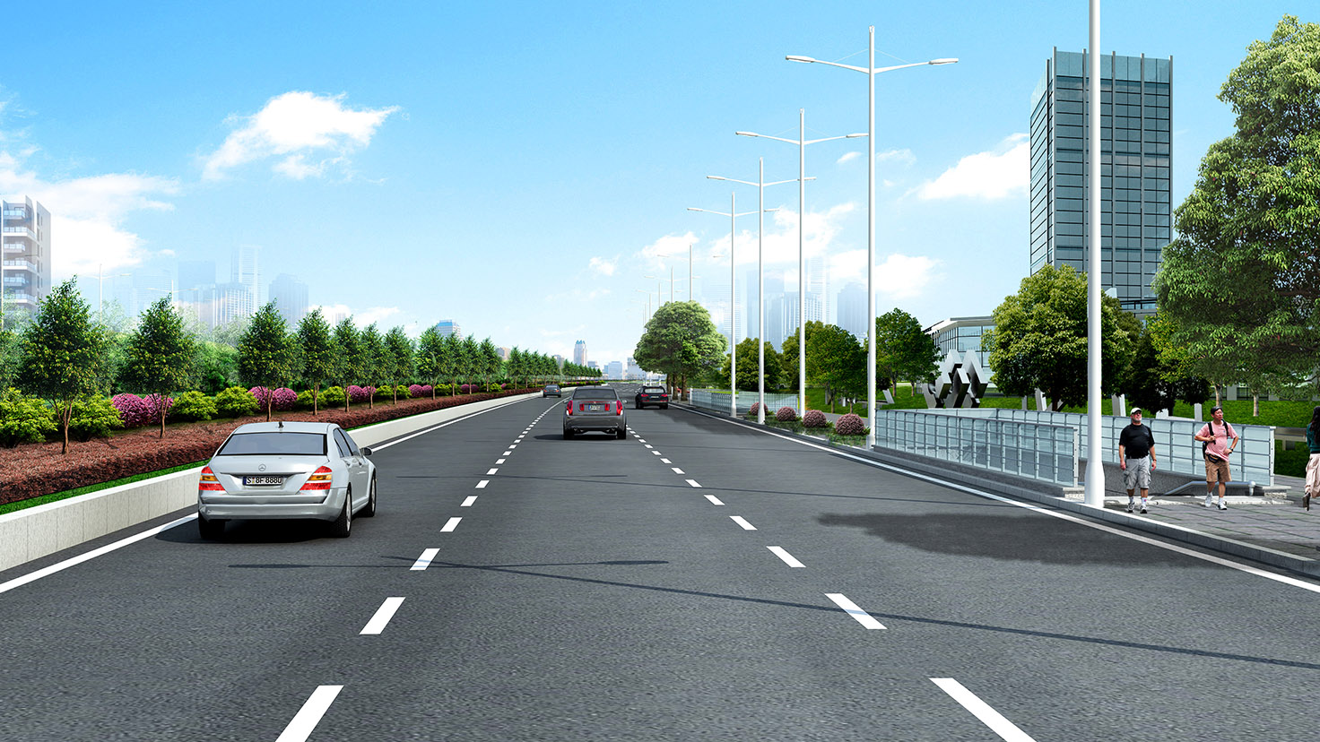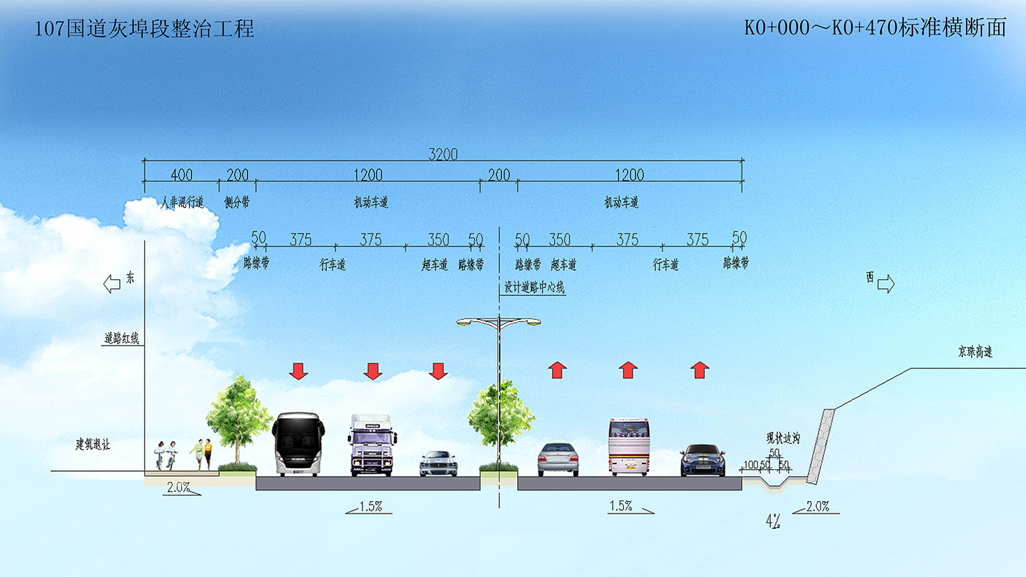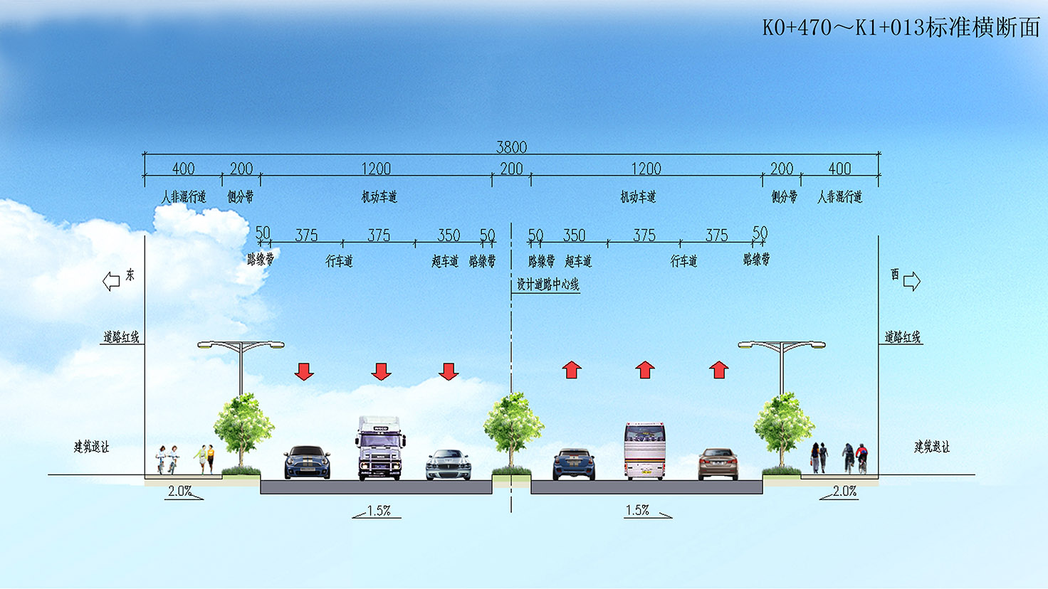 項(xiàng)目規(guī)模:城市主干道,設(shè)計(jì)速度50km/h,路寬60m,總長3.6Km。