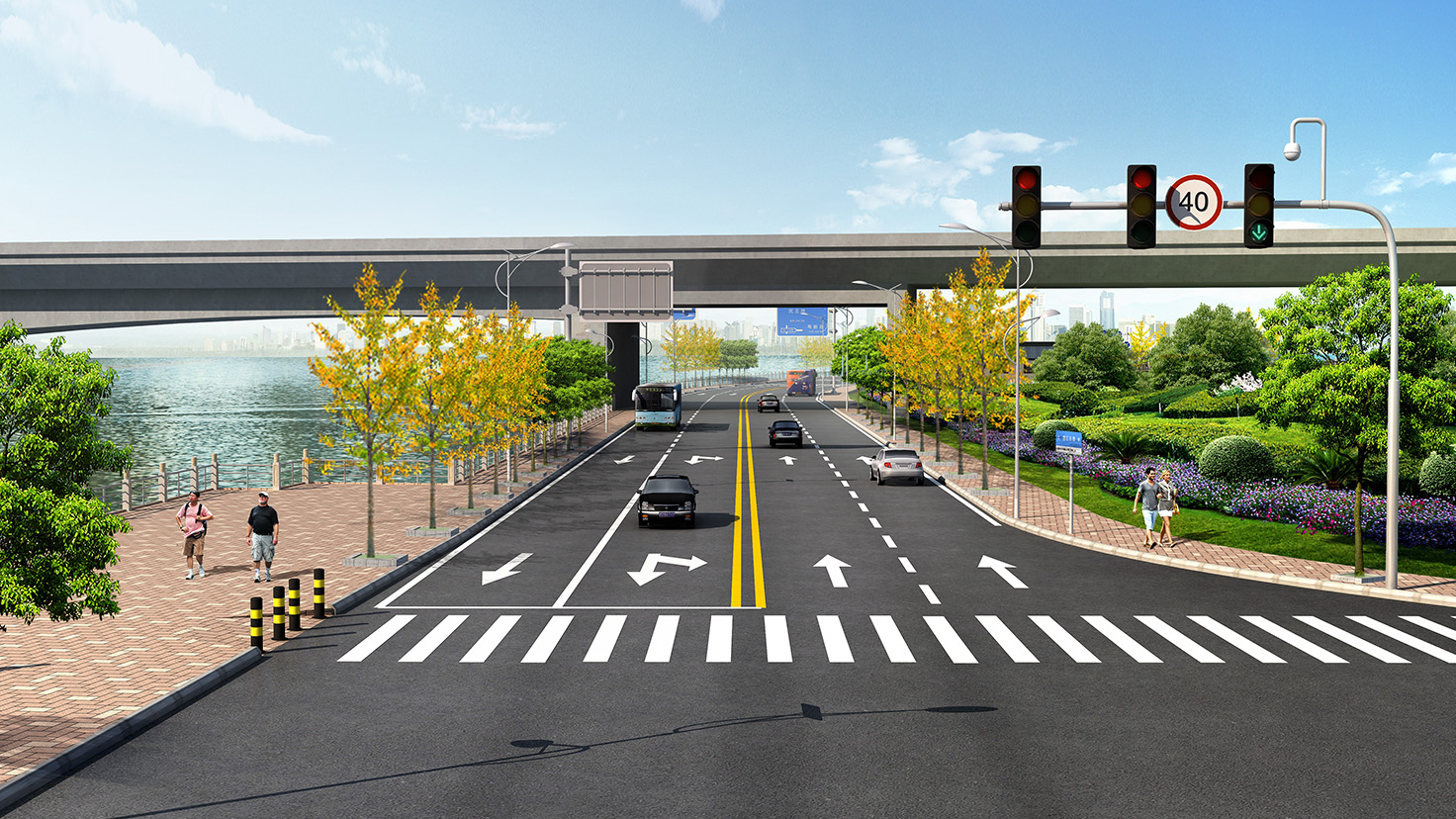 項(xiàng)目規(guī)模:城市次干道,設(shè)計(jì)速度40km/h,路寬40米,總長2.5km。