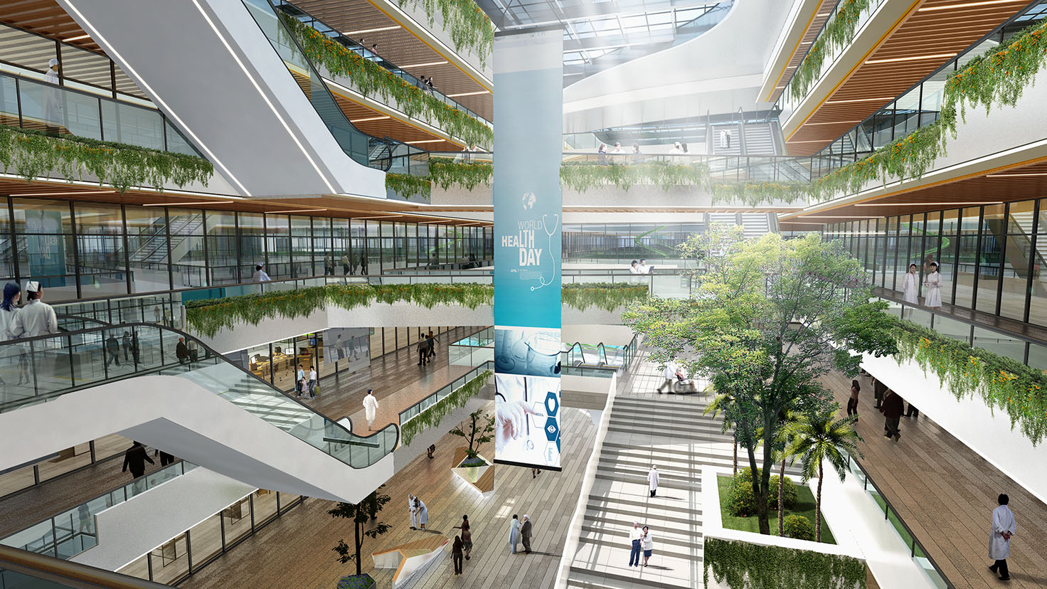 工程簡(jiǎn)介:建筑與周邊環(huán)境緊密融合在一起,和諧共生,營(yíng)造出開放、輕松的城市界面空間與形象。在復(fù)雜的交通體系中打造人行和車流的雙樞紐平臺(tái),在醫(yī)療功能高效的前提下設(shè)置多護(hù)理單元,多中心化,實(shí)現(xiàn)平疫結(jié)合,塑造平和寧?kù)o的醫(yī)院建筑環(huán)境,為患者和醫(yī)護(hù)人員提供多元生態(tài)的休憩場(chǎng)所。