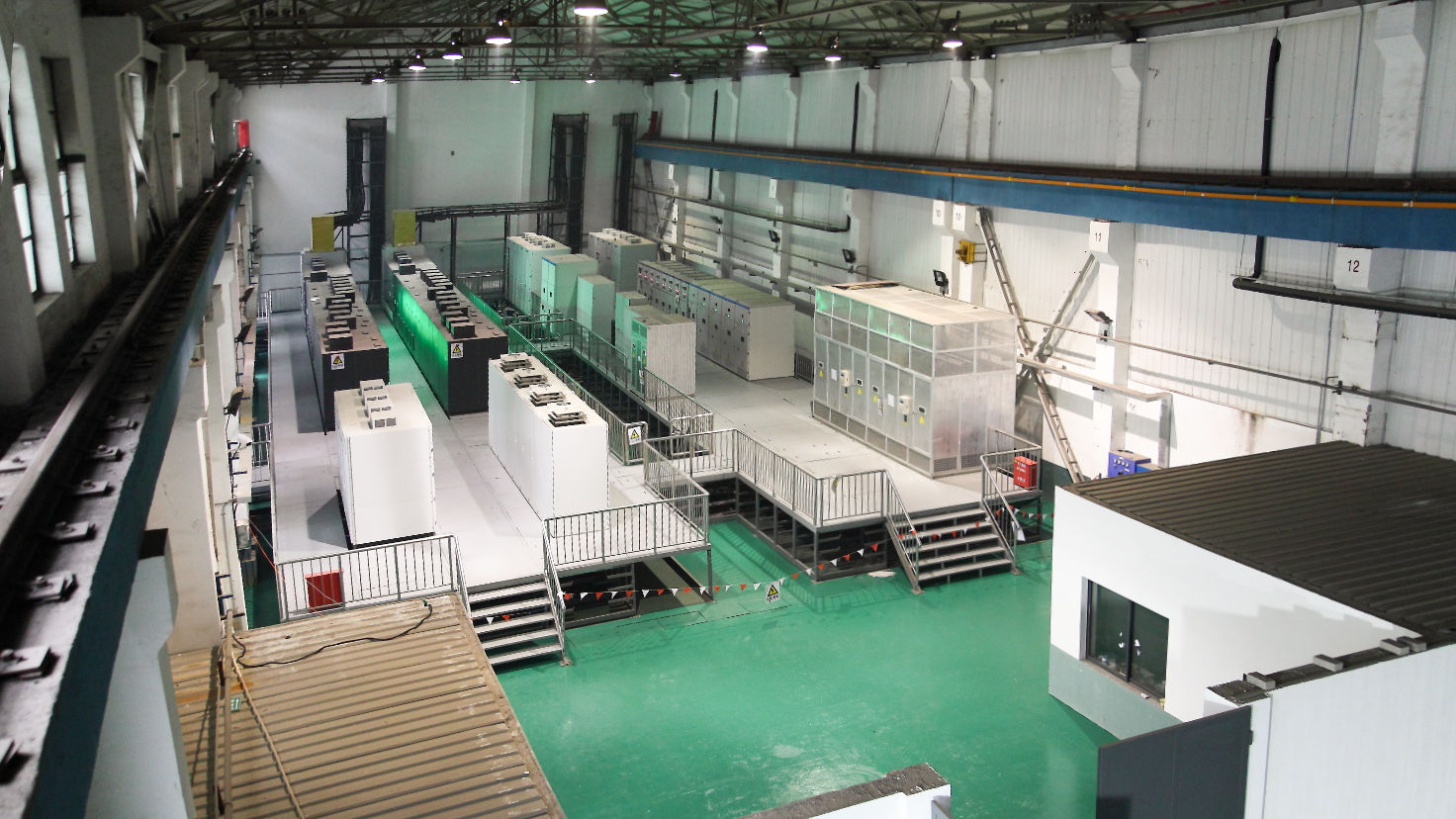 項目規(guī)模:項目工藝裝備投資達1億余元,占用面積近2000平方米。主要針對大型電機、超大型電機、特種大型電機的試驗,電動機直接負載試驗?zāi)芰?8000kW,間接負載試驗?zāi)芰?5000kW,其試驗?zāi)芰閲鴥?nèi)最大,試驗檢測能力及技術(shù)水平國內(nèi)領(lǐng)先國際先進。試驗電源為2x25000kW中壓電力電子變頻電源,試驗變壓器為2x25000kVA,這在電機制造行業(yè)中首次使用。該試驗站由我司EPC總包承建。