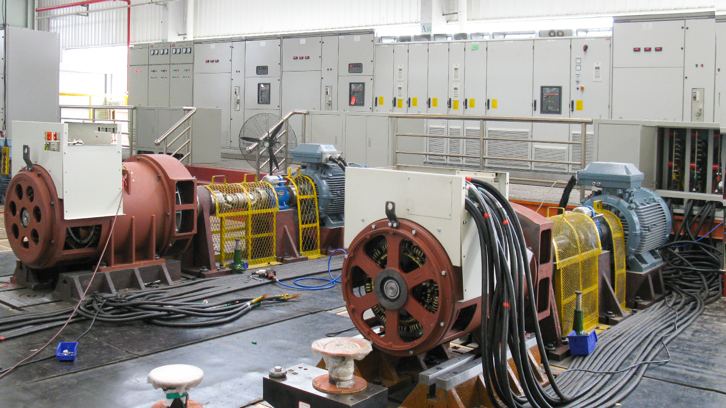 項(xiàng)目概況:南昌ABB泰豪發(fā)電機(jī)有限公司是ABB公司與泰豪科技共同組建的合資企業(yè),試驗(yàn)站承擔(dān)三相同步發(fā)電機(jī)試驗(yàn)任務(wù)。最大試驗(yàn)功率為4MW,轉(zhuǎn)速范圍:600-1800rpm,頻率50~60HZ。該試驗(yàn)站采用ABB工業(yè)傳動(dòng)ACS800多傳動(dòng)系統(tǒng)控制三相異步電機(jī)和三相異步變頻調(diào)速電機(jī),拖動(dòng)被試同步發(fā)電機(jī),檢測測量系統(tǒng)先進(jìn)可靠。滿足國家標(biāo)準(zhǔn)及ABB相關(guān)標(biāo)準(zhǔn)。由中機(jī)國際EPC總承包承建。